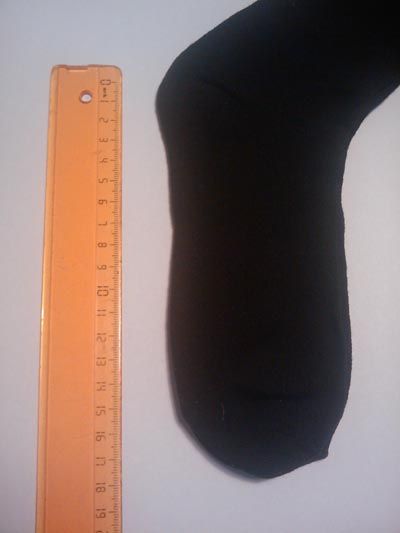 Amint látható ez bizony - szemre két század pontossággal - egy kb 30-as méret. Még kinyújtva is maximum 36-os bütykösre jó, de ahogy felhúztam a 42-es lábamra hirtelen azt vettem észre, hogy a talpamon hordom a sarkamat... Ez még nem minden. Próbakör következett. A laminált parkettán épphogy sikerült talpon maradnom a nagy csúszások közepette, ugyanis a 100% pamut zokni még csak köszönő félben sincs a gyapottal. De biztos az okosz kici kínai agyából kipattant a műgyapot ötlete, amit megvalósítva, megpödörve, megszőve adják el 590Ft / 3 pár (azaz szok darab) áron:
