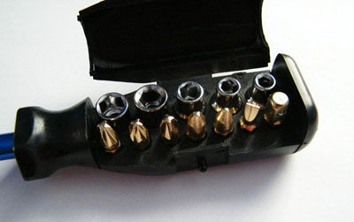 A csőkulcs bitje konkrétan elforog a Hattori Hanzo által megedzett alumínium szárban (a többi bitet az asszimmetrikusság miatt csak egyféleképpen tudom belehelyezni):