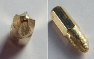És az ötágú bit ötödik bemarását elfelejtette pistabácsi befejezni (de ha látott már valaki ilyen fejű csavart, kérem jelentkezzen):